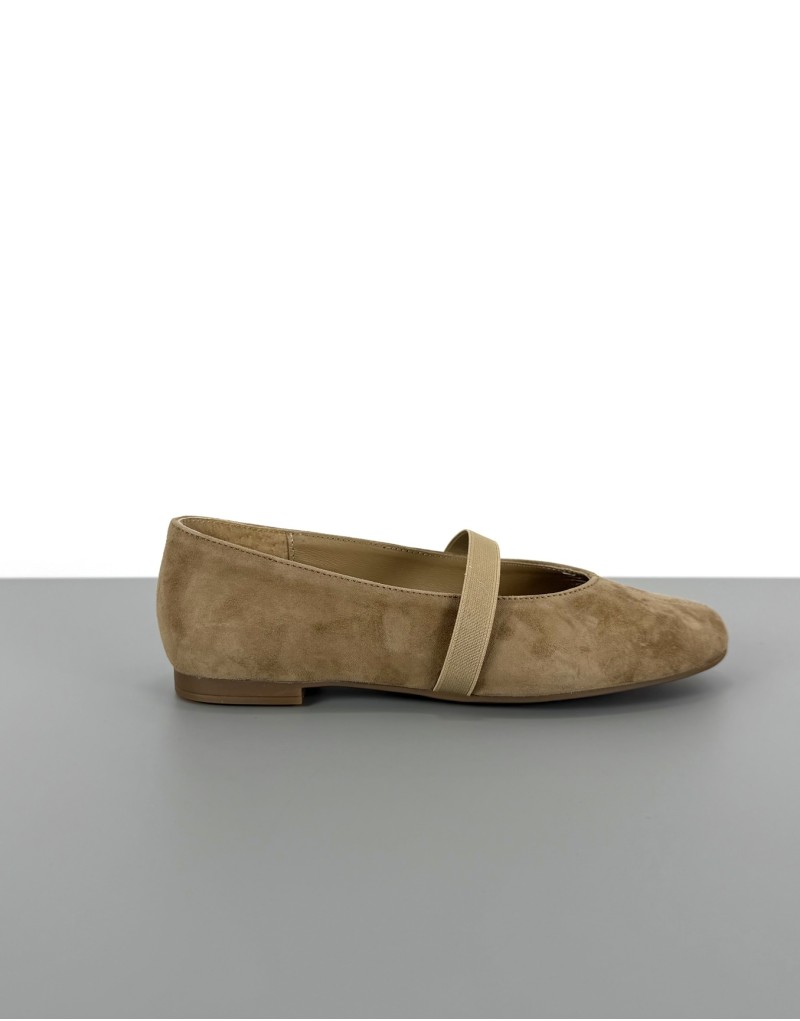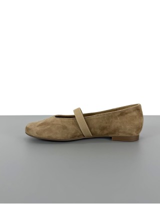 Jasnobrązowe welurowe baleriny z paskiem RYŁKO