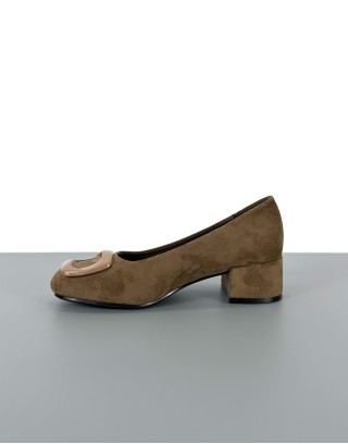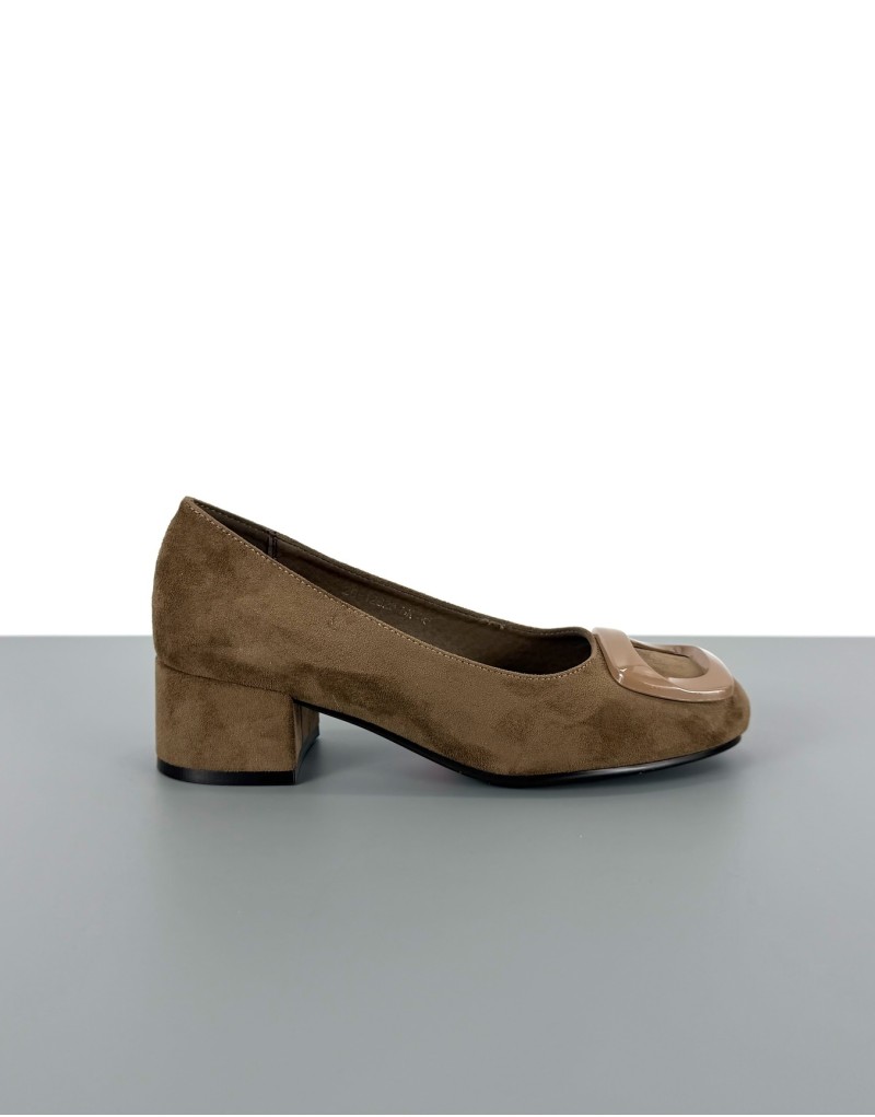 Czółenka na klocku brązowe | 91103