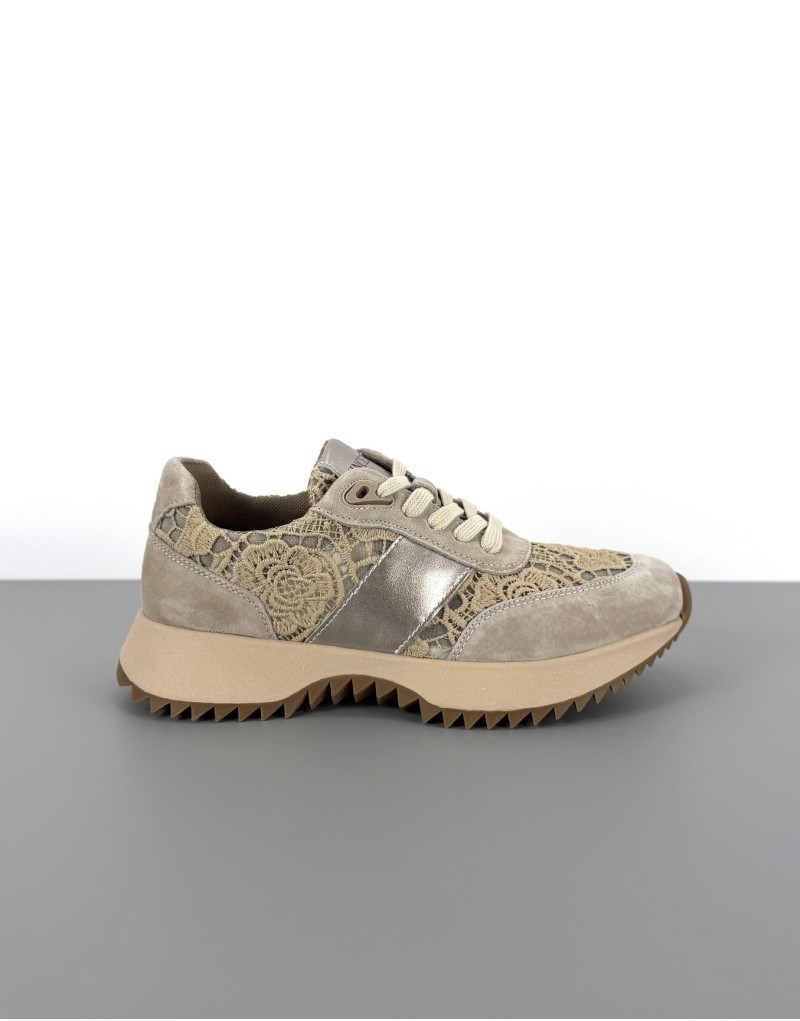 Skórzane sneakersy z koronką khaki