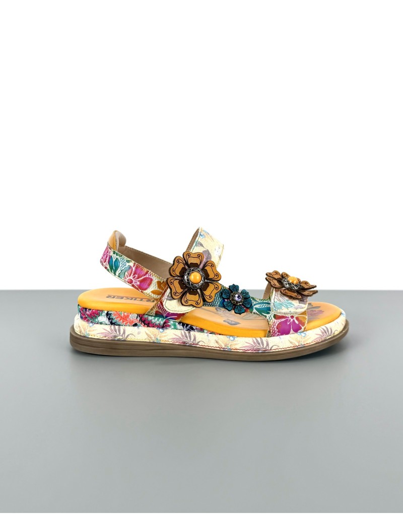 Sandały skórzane w kwiaty żółte