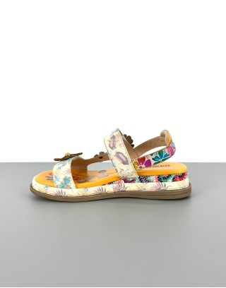 Sandały skórzane w kwiaty żółte | 14519