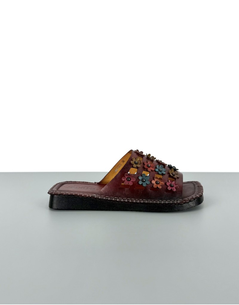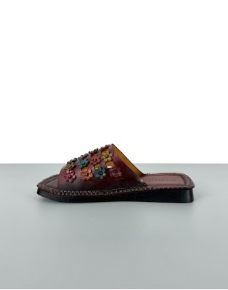 Klapki skórzane w stylu barefoot bordowe