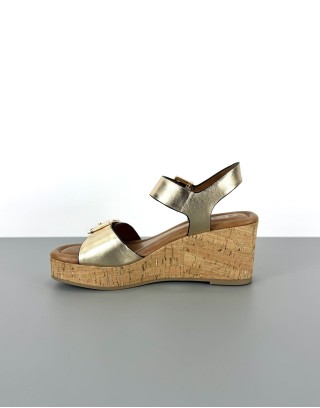 Marco Tozzi sandały na koturnie złote