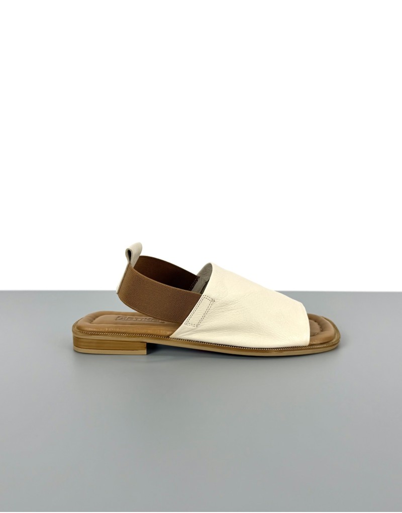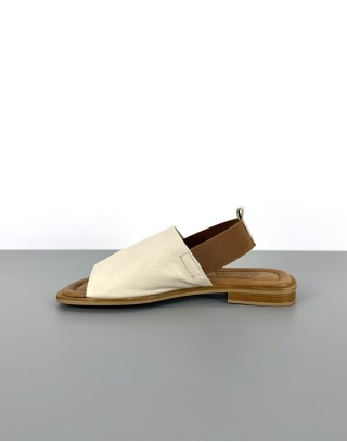 Skórzane sandały na płaskim beżowe | 14524