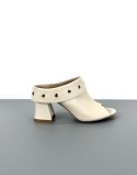 Skórzane sandały na płaskim beżowe