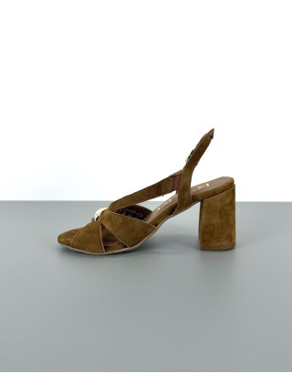 Ryłko eleganckie sandały na klocku brązowe | 02529