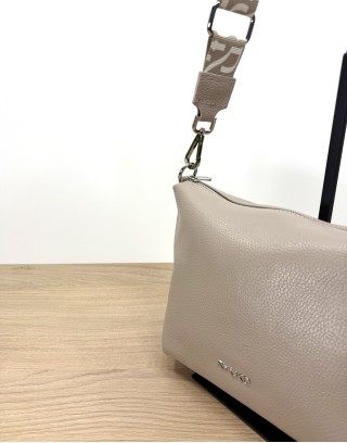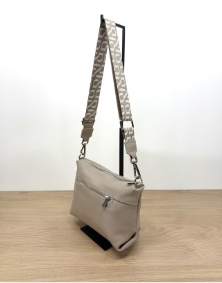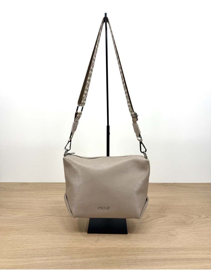 Kremowa torebka średniej wielkości z linii RYŁKO to połączenie elegancji i funkcjonalności. Wykonana ze skóry licowej, wyróżnia się paskiem z taśmy z logotypem, który dodaje jej nowoczesnego charakteru. Zapięcie na zamek zapewnia bezpieczeństwo przechowywanych przedmiotów. Model wyposażony jest w jedną kieszeń wewnętrzną i jedną kieszeń zewnętrzną,